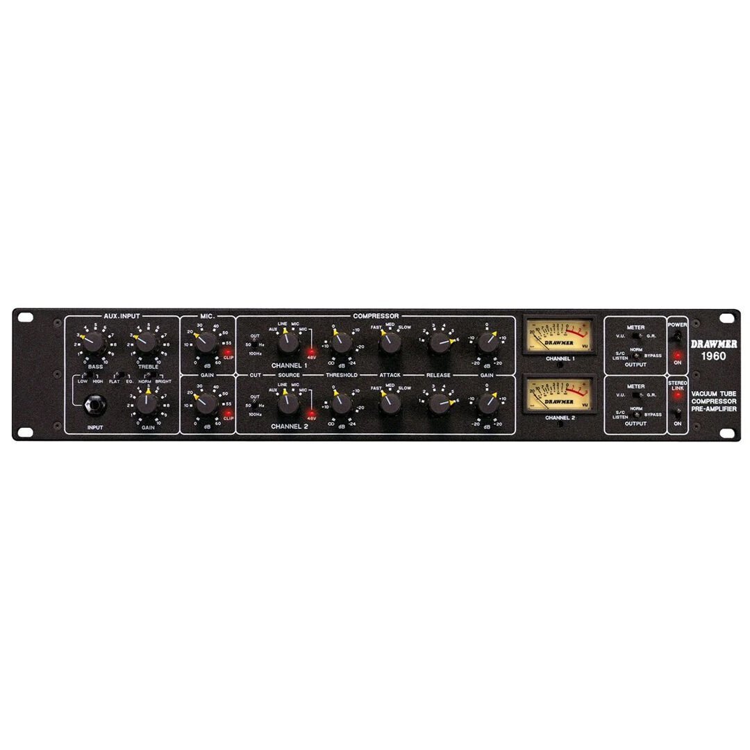 Drawmer 1960 iki kanallı bir ünitedir ve her kanalda tamamen doğal ses veren 'soft knee' vakum tüp kompresör ve değiştirilebilir 48 volt fantom güce sahip son derece düşük gürültülü mikrofon ön amplifikatörü bulunur. Ayrıca EQ'lu bir yardımcı enstrüman pre-amplifikatörü de bulunmaktadır. Eşsiz tonalite sunan klasik valf devresi ve 60dB'ye kadar kazanç sağlayan düşük gürültülü dengeli mikrofon girişinin bu güçlü kombinasyonu, dünyanın dört bir yanındaki mühendislerin yüksek performanslı kondenser mikrofonların tüm potansiyelinden yararlanmasını sağlamıştır. Bunun bir örneği, canlı klasik müziğin miks konsoluna gerek kalmadan doğrudan dijital stereo kaydıdır.