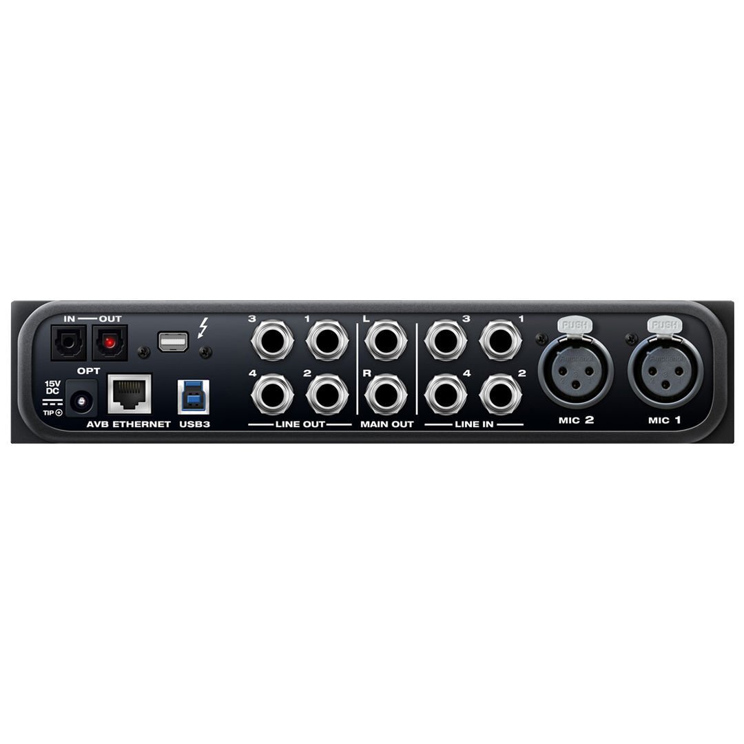 256 ses kanalı (128 giriş ve 128 çıkış) desteği ile Thunderbolt ™, süper hızlı USB 3.0 veya AVB / TSN Ethernet ile bilgisayarınıza bağlanır. USB ses sınıfına uyumlu firmware ve yüksek performanslı endüstri standardı sürücüler, herhangi bir ses uygulaması ile çalışır. IPad ™ 'e standart bir kamera bağlantı kiti (adaptör) ile bağlanır.