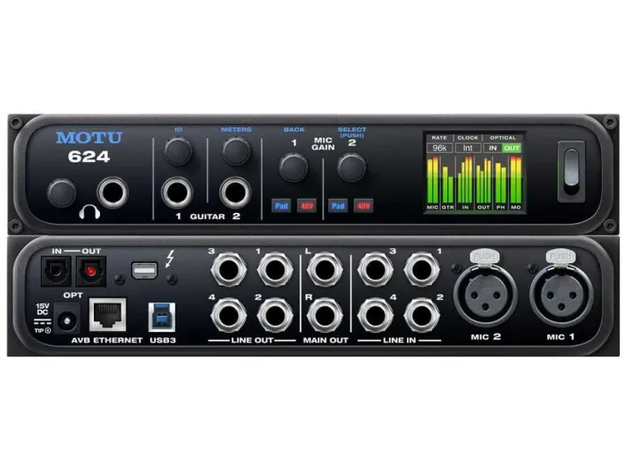 MOTU 624 ESS Sabre32 Ultra DAC 16 x 16, web tabanlı kontrol arayüzü sayesinde bilgisayar, tablet veya akıllı telefon üzerinden tüm DSP, miks ve cihaz ayarlarını kolayca yönetmenizi sağlar. Donanımın kendi içinde barındırdığı web uygulaması, herhangi bir platformdan (Mac, Windows, Linux, iOS, Android) erişim imkanı sunar. Touch Console™ ile dokunmatik ekranlarda büyük, sezgisel kontrol alanları sayesinde miks işlemleri parmaklarınızın ucunda olur. Stand-alone modunda, bir Wi-Fi router ile kablosuz kontrol ve güçlü miks özellikleri bilgisayara ihtiyaç duymadan kullanılabilir. AVB/TSN Ethernet ile sisteminizi kolayca genişletebilir, birden fazla MOTU arayüzünü birbirine bağlayarak yüzlerce ses kanalını düşük gecikmeyle ağ üzerinden aktarabilirsiniz. Tam renkli LCD ekran, tüm giriş/çıkış aktivitelerini detaylı olarak gösterir ve donanım ayarlarına hızlı erişim sağlar. Ayrıca, Mac ve Windows için sunulan AudioDesk yazılımı ile 24-bit kayıt, örnek hassasiyetinde düzenleme ve 32-bit miks/mastering işlemleri profesyonel seviyede gerçekleştirilebilir.