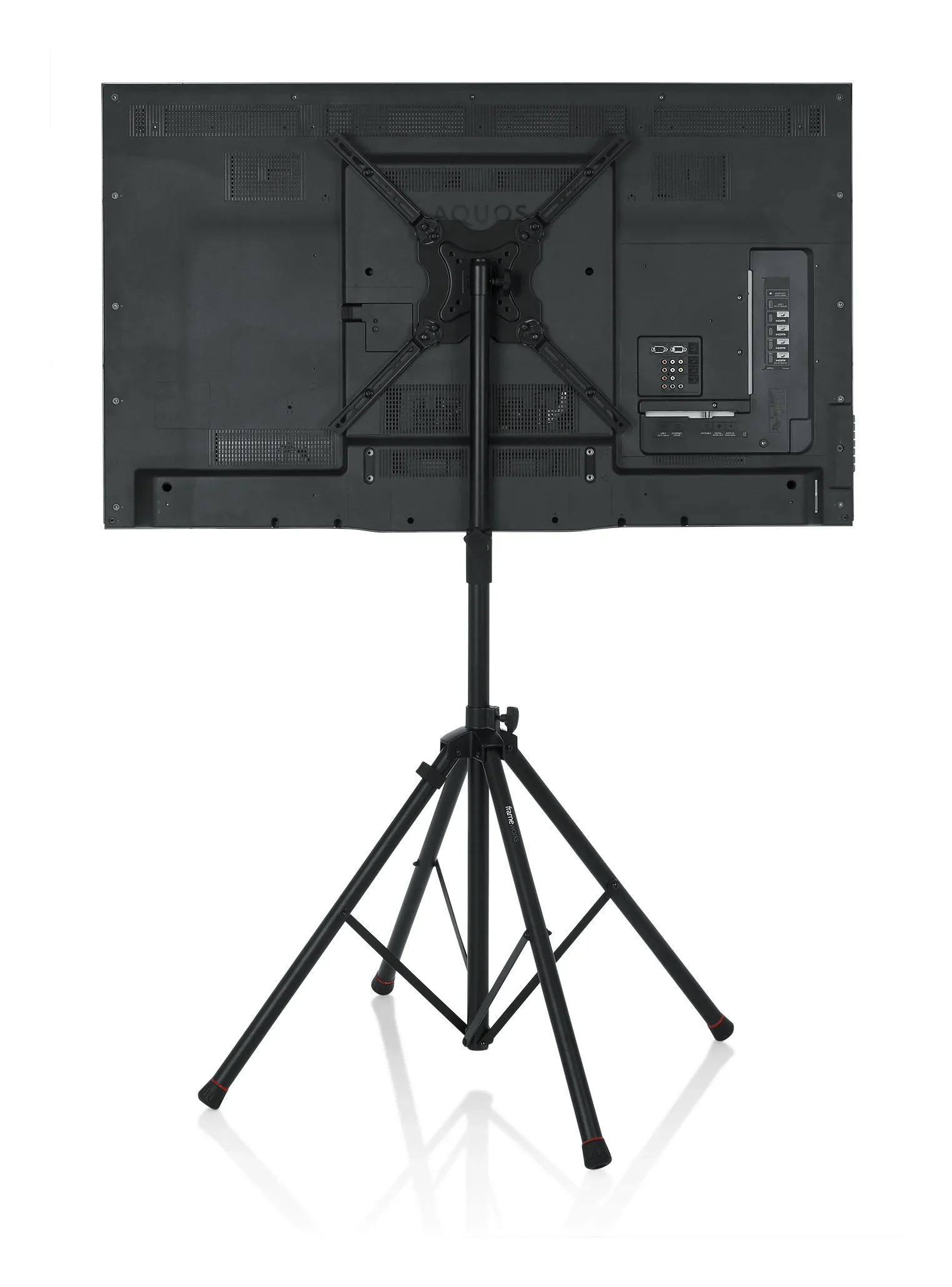 Frameworks Deluxe dört ayaklı LCD/LED standı, Lift-EEZ pistonlu kaldırma sistemiyle kolay ve güvenli yükseklik ayarı sunar; 65″e kadar ekranlarla uyumlu, sunumlar ve etkinlikler için ideal