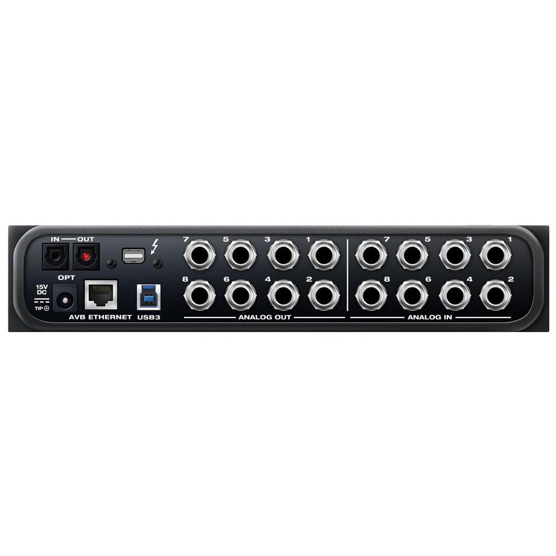 16 giriş ve 18 çıkış için 8 x 8 dengeli analog, 8 kanallı ADAT optik ve bağımsız kulaklık çıkışı elde edersiniz. Optik bağlantı noktaları ayrıca stereo TOSLink'i (optik S / PDIF) destekler.