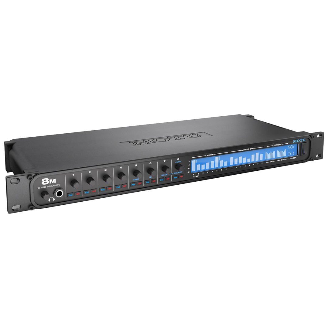 8M, dünyada 48 kanal miks ve AVB network kullanan, Thunderbolt teknolojisine ve 8 mikrofon preampına sahip ilk ses ara yüzüdür.