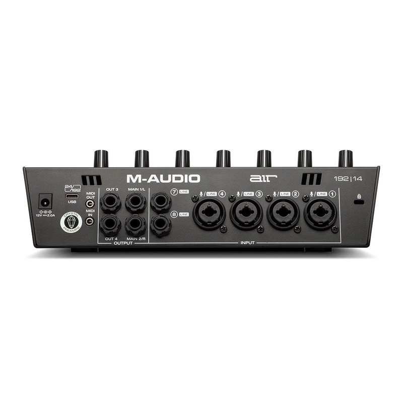 M-Audio 192-14, 1/8” (3.5 mm) MIDI giriş ve çıkışları ile harici MIDI ekipmanlarınızı kolayca entegre etmenizi sağlar. Synthesizer, drum machine veya kontrol cihazları gibi ekipmanlarla kusursuz bir iletişim kurarak, prodüksiyonunuzu bir üst seviyeye taşıyabilirsiniz. MIDI adaptörleri ve yazılım indirme kartları da kutu içeriğinde yer alır, böylece kurulum süreci hızlı ve sorunsuz gerçekleşir.
