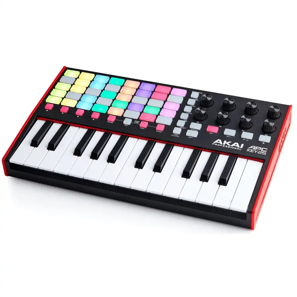 Akai Professional APC Key 25 Mk2, Ableton Live kullanıcıları için özel olarak tasarlanmış kompakt bir MIDI klavye kontrolcüsüdür. 5x8 pad ızgarasında yer alan 40 RGB arkadan aydınlatmalı pad sayesinde, canlı performanslar ve stüdyo çalışmaları için etkileyici bir klip tetikleme deneyimi sunar. 25 tuşlu Gen 2 Dynamic Keybed sayesinde melodiler, akorlar ve armonik yapılarınızı kolayca oluşturabilirsiniz. 8 sonsuz döner enkoder ile miks ve efekt parametreleri üzerinde hassas kontrol sağlayan APC Key 25 Mk2, sahnede veya stüdyoda yaratıcı sürecinizi en üst düzeye çıkarır. Ayrıca, özel sahne başlatma düğmeleri ve yön okları ile Ableton Live içinde hızlıca gezinebilir, sezgisel bir müzik üretim deneyimi yaşayabilirsiniz.