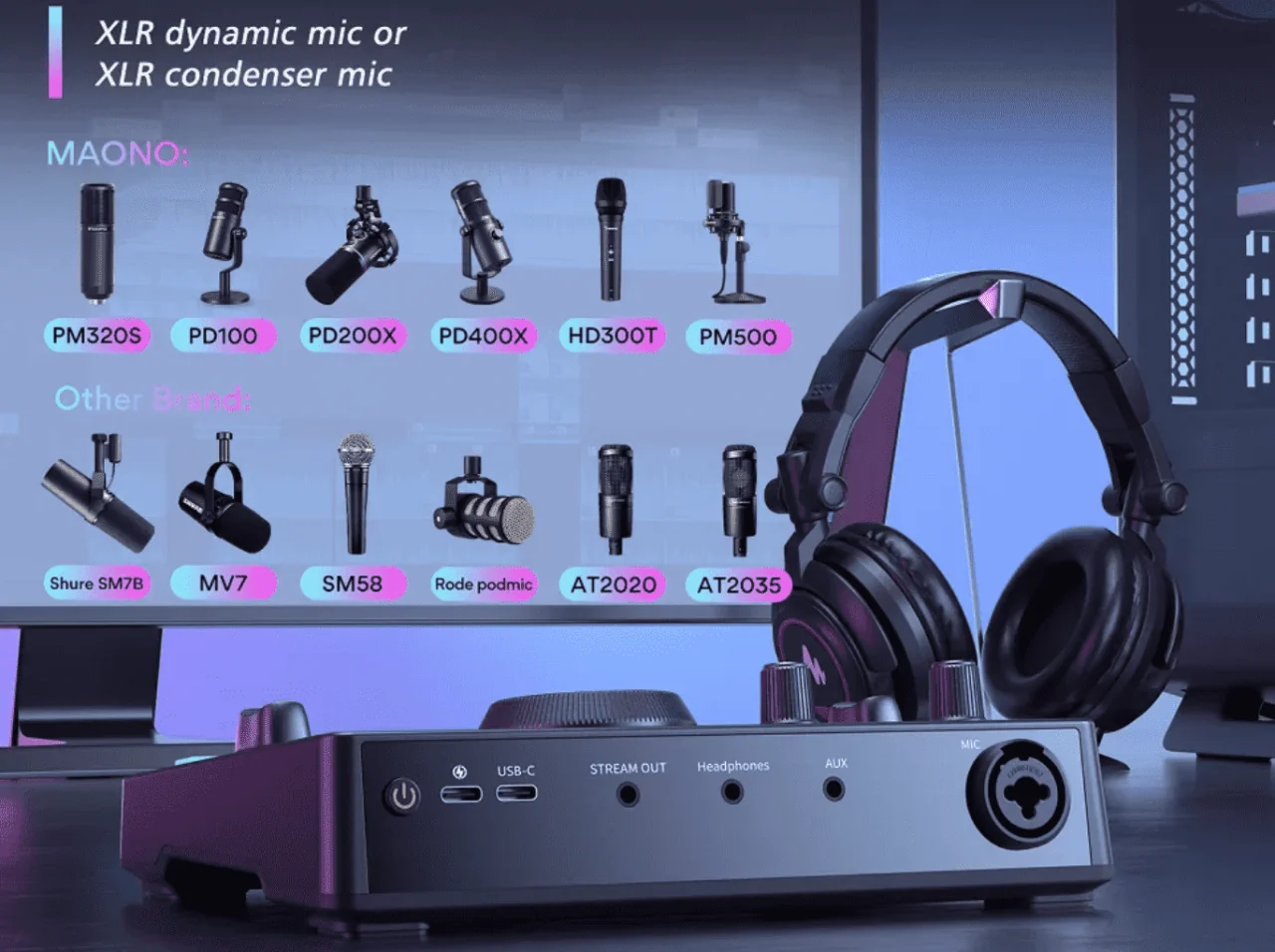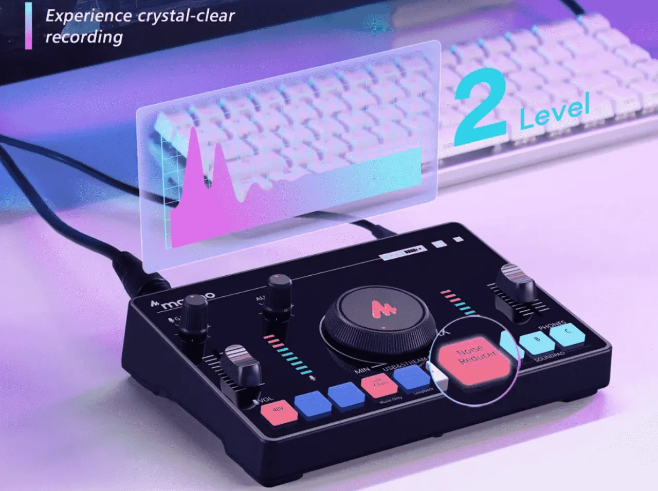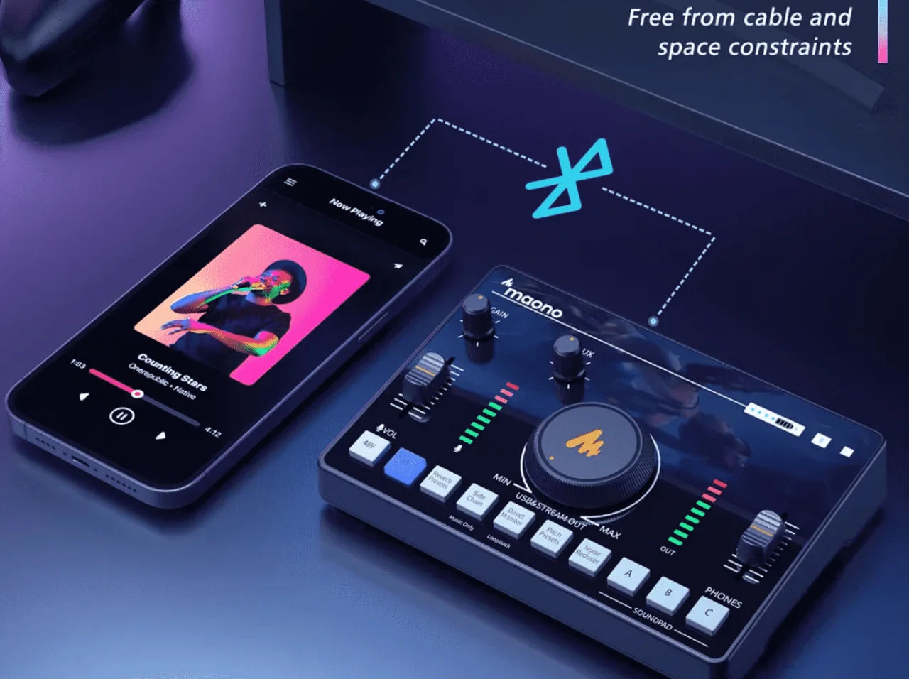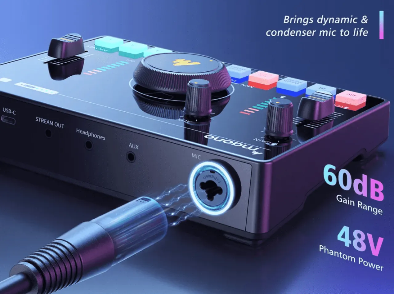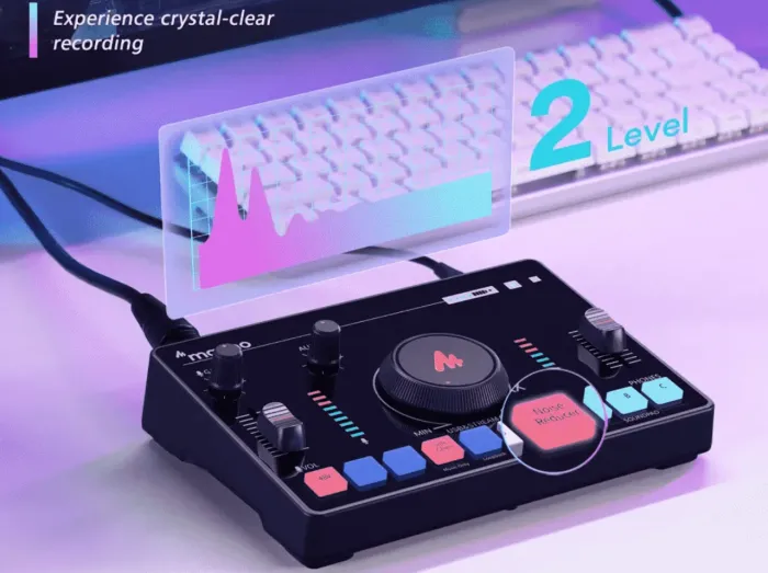 Maono AMC2 NEO, yayın, podcast ve mobil prodüksiyon için geliştirilmiş, “her şeyiyle” bir arada sunan kompakt streaming mikseridir. USB-C, XLR/6.35 mm, AUX ve Bluetooth girişleriyle geniş cihaz uyumu sağlar, dahili bataryasıyla mobil kullanıma da olanak verir.
