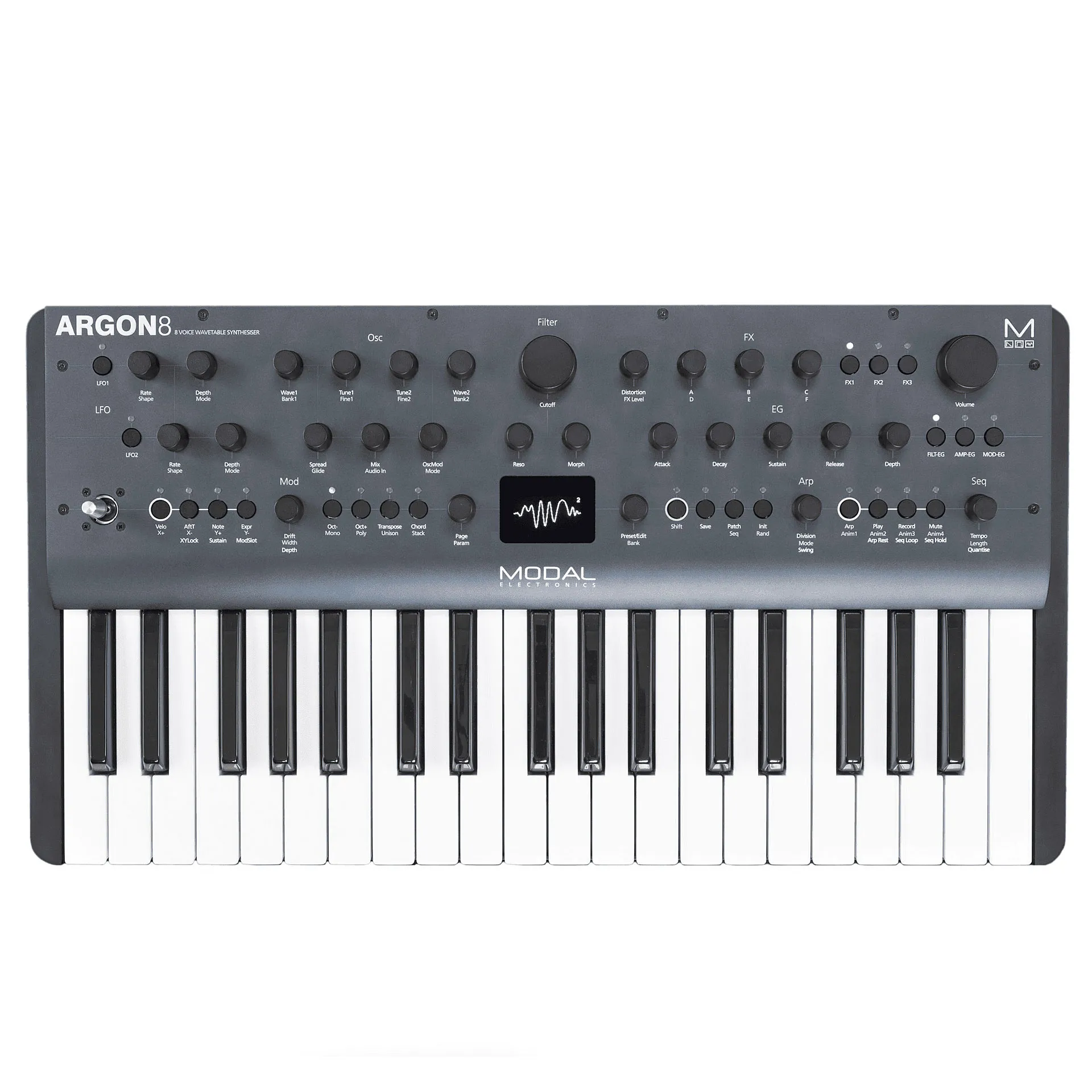 Modal Electronics Argon8, modern müzik prodüksiyonunda sınırları zorlamak isteyenler için tasarlanmış, ileri düzey bir wavetable synthesizer’dır. 32 yüksek çözünürlüklü wavetable osilatörü ve 180 özenle hazırlanmış wavetable ile, ses tasarımında benzersiz bir çeşitlilik sunar. Her biri 4 osilatörden oluşan 8 gerçek polifonik ses, karmaşık ve zengin dokular oluşturmanıza olanak tanır. Argon8’in gelişmiş modülasyon matrisi, LFO’ları ve zarfları onlarca farklı hedefe yönlendirme imkânı sunarken, 12 slotlu modülasyon matrisi sayesinde karmaşık modülasyon yolları kolayca atanabilir. Bu sayede, sesleriniz sürekli evrilir ve sıradanlıktan uzaklaşır. Özellikle elektronik müzik prodüktörleri, sahne sanatçıları ve deneysel ses tasarımcıları için Argon8, ilham verici bir araç olarak öne çıkar. MPE desteği sayesinde, MPE uyumlu MIDI kontrolcülerle her nota üzerinde polifonik kontrol ve ifade özgürlüğü elde edebilirsiniz. Argon8, klasik analog karakteri modern dijital esneklikle birleştirerek, hem stüdyoda hem de sahnede yaratıcı potansiyelinizi en üst düzeye çıkarır.