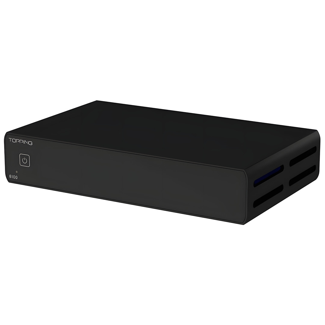 Topping'in tescilli amplifikatör modülü sayesinde B100, 4 ohm yük altında 100W'a kadar güç sağlar ve bu sırada %1'den daha az THD+N korur. Daha da etkileyici olanı, 4 ohm altında 5W güçte bozulma oranı %0.00007'nin altındadır. Bu değerler, en talepkar ses işleme süreçlerinde bile ES9039SPRO gibi üst düzey DAC çiplerinin performansıyla yarışmasını sağlar. 8 ohm yük altında ise B100, 50W güç (THD+N <%1) sunma kapasitesine sahiptir.