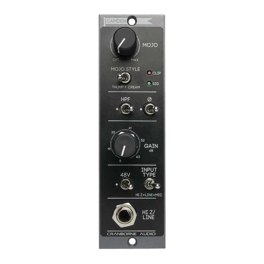 Özellikler: İki adet Camden 500 serisinden alınan ödüllü "camden" topolojisi içeren ayrık elemanlı mic/line/hi-z preamplifikatörü Tüm kazanç seviyelerinde teorik sınırlara yakın gürültü, distorsiyon, faz/frekans lineerliği - EIN: <-129.5dBu, 150 Ohm, unweighted, <-135.5dBu, Inputs common, unweighted - THD+N: <0.00025% (1kHz, 35dB kazanç, +24dBu çıkış) - Intermodulation Distortion: <0.0006% (50Hz and 7kHz, 35dB gain, +20dBu çıkış) - Phase Shift: <2.75° (20Hz to 20kHz, 40dB kazanç), <6° (20Hz to 20kHz, Max Kazanç) - Frekans Cevabı: ±0.7dB (< 1 Hz to > 1000 kHz, 35dB kazanç), ±1dB (< 5 Hz to > 200 kHz, Max Kazanç) Benzersiz 48V durum LED'i - 48V LED voltaj şarj olurken turuncu yanarak ribbon mikrofonları eksik voltaj ile çalıştırıp bozulmalarına karşı görsel bir uyarı sağlar. - Kırmızı yandığında ise tam olarak şarj olduğunu göstererek güvenle kullanabileceğinizi belirtir. İki adet ayarlı, true bypass özellikli ve iki ayrı analog saturasyon ayarına sahip (Thump ve Cream) "Mojo" analog saturasyon devresi Bağımsız Ch1, Ch2, Ext Giriş ve Aux giriş seviye kontrollü miksere sahip iki adet ayrık kulaklık mikserleri - Mikrofon yerleştirme sırasında en uygun yeri tespit ederken sadece Camden mikrofon çıkışını dinleyebilme - AUX Input girişlerine verilen playback sinyali ile Camden mikrofon sinyalini miksleyerek şarkıcılar için sıfır-gecikmeli artist miksi oluşturma - Kritik dinlemeler için ses kartınızın çıkışını Aux girişlere vererek Camden EC2'nin referans seviyesi kulaklık çıkışı ile dinleme yapmak. İki adet referans seviyesi, yüksek güçlü kulaklık amplifikatörü - Frekans cevabı: < ±1dB, < 1 Hz ila > 100 kHz - Çıkış empedansı: 0.33 Ohms - THD: 0.0003%, 1kHz - Çıkış Gücü : 2x250mW @ 600 Ohm, 2x450mW @ 220 Ohm, 2x250mW @ 100 Ohm Ses kartlarına kolay bağlantı için balanslı XLR ve empedans balanslı 1/4" jack çıkışlar - Düşük headroom'lu ses kartları için -10 dB pad Gerçek enstrüman DI fonksiyonalitesi için empedans balanslı 1/4" jack link çıkışı. Enstrüman sinyalini balanslı veya balanssız amplifikatör veya efekt cihazlarına yollayabilme C.A.S.T. çıkışı ile 500R8/500ADAT'a bağlanabilme - Camden EC2'in preamp ve EXT Giriş sinyalini doğrudan 500R8 ve 500ADAT'lardaki 500 serisi modül girişlerine yollayarak kayıt ve proses edebilme - 500R8/500ADAT tarafından oluşturulan stereo mix'i Camden EC2 kulaklık preamp'i üzerinden dinleyebilme - Tüm veri haberleşmesi Cat 5e, Cat 6 ceya Cat 7 kablo üzerinden gerçekleşir. C.A.S.T.IN bağlantısı ile N22/N22H Cat 5 sanke kabloları ile Camden EC2 giriş ve çıkışları stüdyonun herhangi bir yerine taşıyabilme - N22/N22H üzerindeki 2 mikrofon/line sinyalini Camden EC2'nin preamp girişlerine verebilme - Camden EC2'nin Aux 1 kulaklık miksini N22/N22H üzerinden müzisyene dinleme için yollayabilme - Tüm veri haberleşmesi Cat 5e, Cat 6 ceya Cat 7 kablo üzerinden gerçekleşir. Harici 24V, 1.2A güç kaynağı