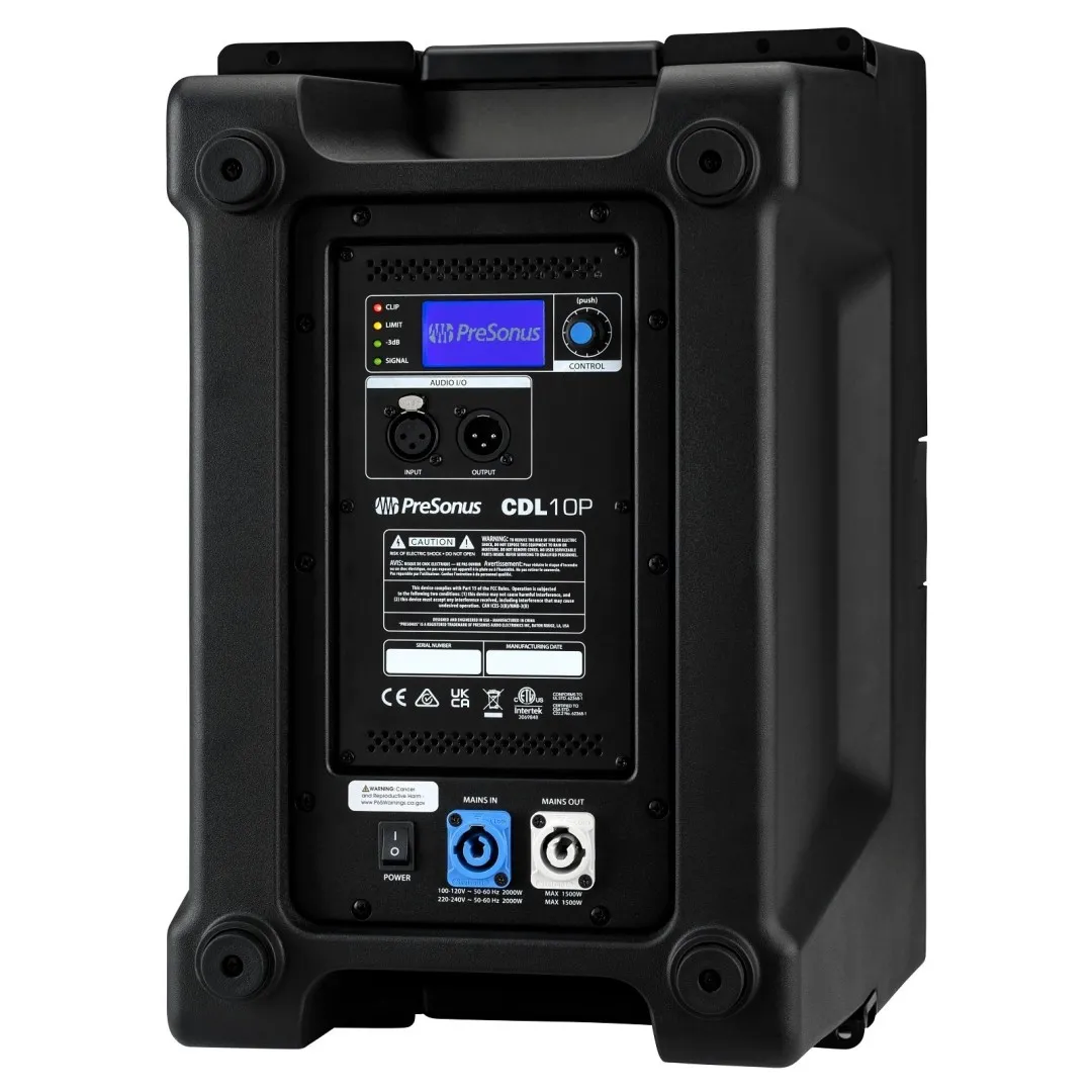 CDL10P, entegre 500W x 500W Class D amplifikatör ile donatılmıştır. Yüksek frekans sürücülerindeki 1 inçlik ses bobinleri, toplamda 6 adet sürücüye paylaştırılarak güç sıkışması minimize edilir. Bu, daha verimli bir güç kullanımı ve daha dengeli, yorgunluk yaratmayan bir ses sunumu sağlar. Dahili DSP, 90 Hz yüksek geçiş filtresi, 1 ila 6 kutu arasında dizilim modu ve farklı subwoofer konfigürasyonları için ön ayarlar içerir. Böylece kullanıcılar, farklı mekan ve uygulamalara göre hızlı ve kolay ayar yapabilir. Ayrıca, sinyal, -3 dB, limiter koruması ve clip izleme özellikleriyle sistem güvenliği üst düzeydedir. CDL10P, dayanıklı ve hafif plastik kabini ile tur kalitesinde 1.2 mm çelik ızgarası sayesinde zorlu turne koşullarına uygundur.