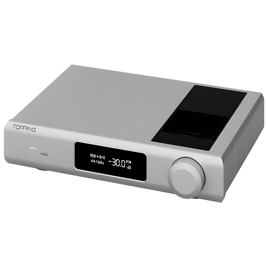 Topping'in D90 III Ayrık dengeli DAC'ı, %100 ayrık dijital/analog dönüştürme modülü kullanan D90III'e paraleldir. Burada dönüştürme, kanal başına bir PSRM modülü tarafından gerçekleştirilir ve PCM 32bit 768kHz ve DSD 512'ye kadar dönüştürme sağlar. Bu DAC ayrıca bir Qualcomm QCC5125 Bluetooth 5.1 çipi ve arka panelde bir 12V tetik girişi ve çıkışı içerir. Altera Max CPLD gibi önceki sürümde bulunan üst düzey bileşenler de dahil edilmiştir.