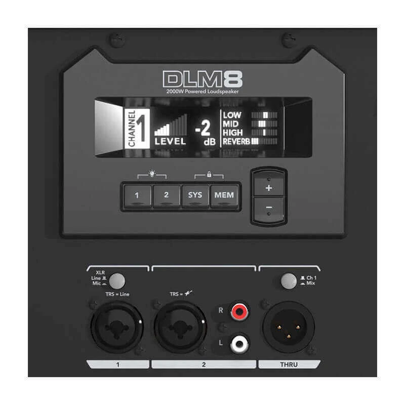 DLM8, 2000 W amplifikatör gücüyle kompakt yapısına rağmen yüksek SPL üretir. Dahili 2 kanallı mikseri, 3 bantlı EQ’su ve dijital efektleri ile geniş kullanım esnekliği sağlar. Pole mount, askı aparatı veya monitör olarak kullanılabilen tasarımı sayesinde çok yönlüdür. Hem taşınabilir uygulamalar hem de sabit kurulumlarda profesyonel ses çözümü sunar.