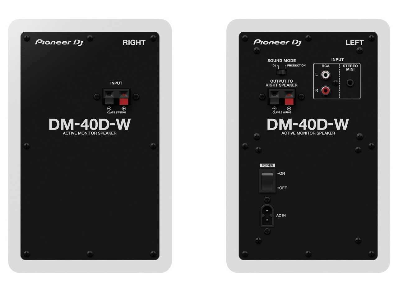 Pioneer DJ DM-40D, farklı DJ ve prodüksiyon ekipmanlarıyla kolay entegrasyon sağlayan giriş seçeneklerine sahiptir. RCA ve 3.5 mm stereo mini jak girişleri sayesinde DJ kontrolcüler, miks masaları veya ses kartları gibi birçok cihazla sorunsuz çalışır. Ön panelde bulunan kulaklık çıkışı ve ses seviyesi düğmesi sayesinde kullanım pratikliği artırılmıştır. Kompakt yapısı ve şık tasarımı ile hem ev stüdyoları hem de profesyonel çalışma alanları için ideal bir seçenektir.