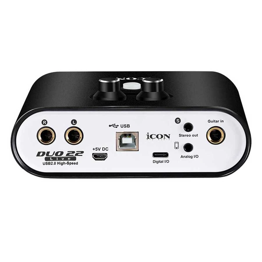 Icon Pro Audio Duo22 Live 2x2 USB ses kartı, esnek, canlı aktarım ve tek mikrofon preamp, Hi-Z enstrüman girişi, analog ve sayısal akıllı telefon I / O ve ses geri döngü fonksiyonu aracılığıyla kayıt yetenekleri olduğunu ispatlamıştır. USB ile çalışan Duo22 Live, dayanıklı alüminyum yapıya ve 24 bit / 192 kHz yüksek çözünürlüklü AD / DA dönüştürücülere sahiptir, bu da onu ses açısından sağlam ve kullanışlı kılar.