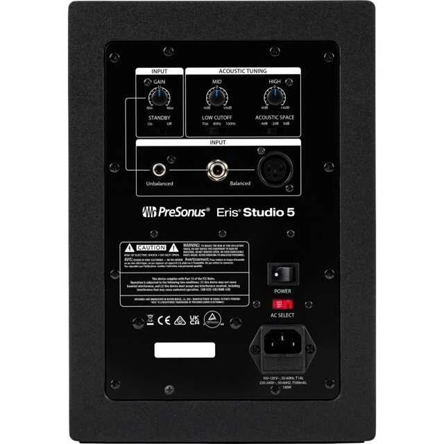 Stüdyonuzun veya çalışma alanınızın ihtiyaçlarına göre şekillendirilebilen Eris Studio 5, çok yönlü bağlantı seçenekleriyle öne çıkar. Arka panelde yer alan dengeli XLR ve 1/4” TRS girişler ile dengesiz RCA giriş, mikserlerden ses kartlarına kadar pek çok kaynağa kolayca bağlanmanızı sağlar. Akustik ortamınıza göre ses karakterini özelleştirebileceğiniz detaylı ayar kontrolleri ise, monitörünüzün bulunduğu konuma ve oda akustiğine göre en iyi sonucu almanıza yardımcı olur. Yüksek frekans, orta frekans ve düşük kesim ayarları ile sesinizi ince ayarlarla optimize edebilirsiniz. Ayrıca, “Acoustic Space” anahtarı sayesinde monitörünüzü duvara yakın veya açık alanda kullanırken oluşabilecek frekans dengesizliklerini kolayca telafi edebilirsiniz.
