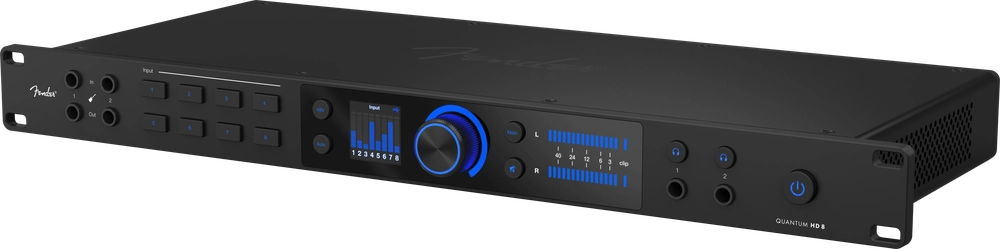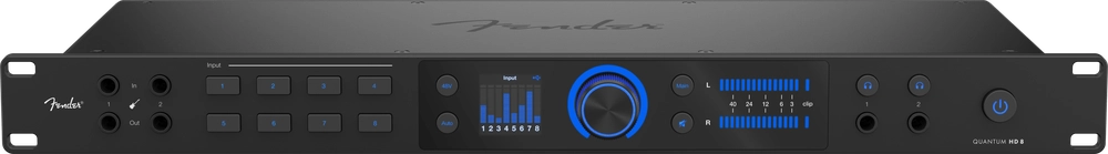 Fender Quantum HD8 - USB-C Ses Kartı, 19 inç rack genişliğiyle stüdyo kurulumlarında düzeni sevenlere hitap eder. Ön yüzde konumlanan enstrüman girişleri, gitar ve bası hızlıca bağlayıp kayıt almaya odaklanmayı kolaylaştırır. Tam renkli, yüksek çözünürlüklü ekran ve aydınlatmalı push encoder, menüler arasında kaybolmadan ayar yapmayı sağlar. Siyah gövde, sahne ve kontrol odasında sade bir görünüm sunar; profesyonel ekipmanlarla aynı çizgide durur.