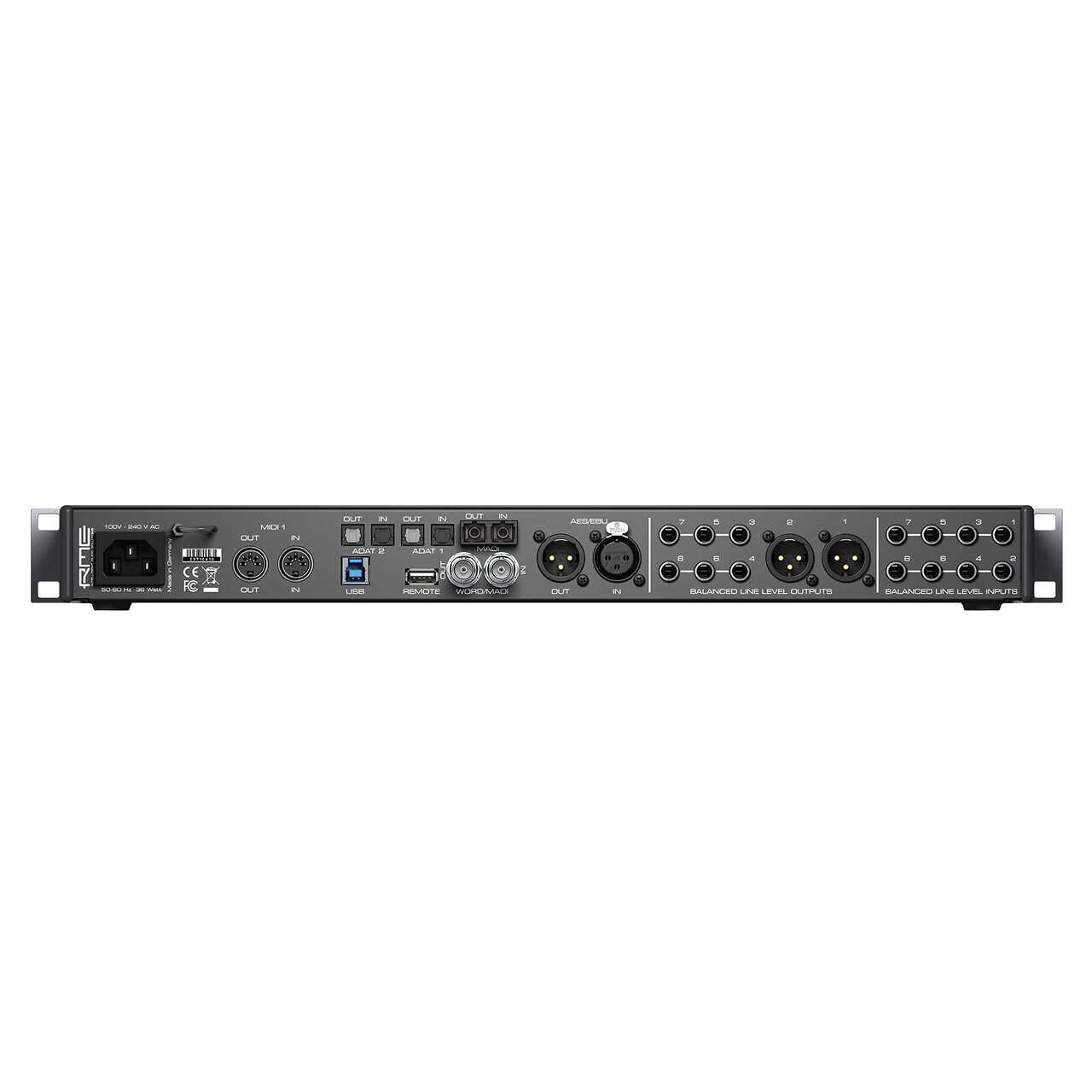Arka panel, Fireface UFX III'ün esnek bağlantı kapasitesini ortaya koyuyor. Başka bir MIDI G/Ç'nin yanı sıra, iki optik ADAT G/Ç, bir AES/EBU G/Ç ve line düzeyine sahip sekiz dengeli analog çıkış (XLR stereo monitör çıkışları dahil) mevcuttur. Yeni Çoklu Mod ile iki ADAT G/Ç, AES G/Ç'ye ek olarak ayrı optik SPDIF girişleri ve çıkışları olarak kullanılabilir. Ayrıca Fireface UFX III, 64 çift yönlü kanala sahip bir optik MADI arabirimi (SC) sunar. Word Clock konektörleri (BNC), gerekirse ek koaksiyel MADI girişi ve çıkışı olarak çalışır.
