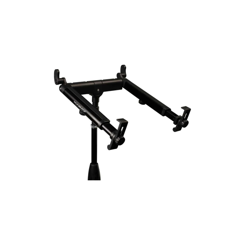 Ultimate Support HYM-100QR HyperMount QR, modern müzik prodüksiyonu ve sahne performansında maksimum esneklik ve güvenlik arayan profesyoneller için tasarlanmış yenilikçi bir dizüstü bilgisayar standıdır. Açısı ayarlanabilir teleskopik destek kolları sayesinde, dizüstü bilgisayarınızı, küçük mikserlerinizi, groove prodüksiyon elektroniklerinizi veya drum pad kontrol cihazlarınızı tam istediğiniz pozisyonda sabitleyebilirsiniz. Bu özellik, özellikle DJ’ler, canlı performans sanatçıları ve stüdyo prodüktörleri için büyük bir avantaj sunar; çünkü ekipmanınızın her zaman erişilebilir, güvenli ve ergonomik bir şekilde konumlandırılmasını sağlar. HYM-100QR HyperMount QR, masaüstü kullanımının yanı sıra, mikrofon standı veya Ultimate Support APEX AX-48 Pro klavye standı gibi herhangi bir 5/8 inç dişli standa kolayca monte edilebilir. Böylece sahnede veya stüdyoda alanınızı en verimli şekilde kullanabilir, ekipmanınızı hızlıca kurup sökebilirsiniz. QuickRelease™ orta direği sayesinde montaj işlemleri son derece pratik ve hızlıdır; bu da yoğun tempolu performanslarda veya stüdyo geçişlerinde büyük kolaylık sağlar. Ürünle birlikte gelen T-stand adaptörü ise masaüstü kullanımında ekstra stabilite ve esneklik sunar. Ultimate Support HYM-100QR HyperMount QR, düz katlanabilir yapısıyla taşınabilirliği de ön planda tutar; böylece ekipmanınızı her yere kolayca götürebilirsiniz. Tüm bu özellikler, ürünü hem sahne hem de stüdyo ortamında vazgeçilmez bir yardımcı haline getirir.