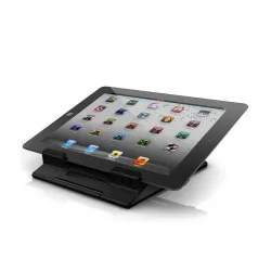 iPad 2 ve diğer tabletler için ayarlanabilir kıskaçlı tepsi; sağlam tutuş, kolay kurulum ve esnek kullanım sunar