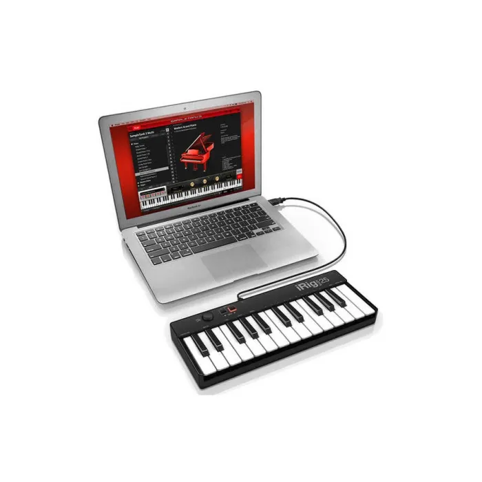 iRig Keys 25, Mac / PC İçin Ultra Taşınabilir ve Uygun Fiyatlı 25 Tuşlu Bir USB MIDI Kontrol Cihazıdır. 25 Adet Hıza Duyarlı Mini Tuşları, Dizüstü Bilgisayarınız veya Konser Çantanızda ya da Sırt Çantanızda Saklamak İçin Mükemmel Olan Kompakt Bir Boyut Elde Etmek İçin Cömert Bir 2 Oktav Aralığı (artı 1 nota) Sunar.