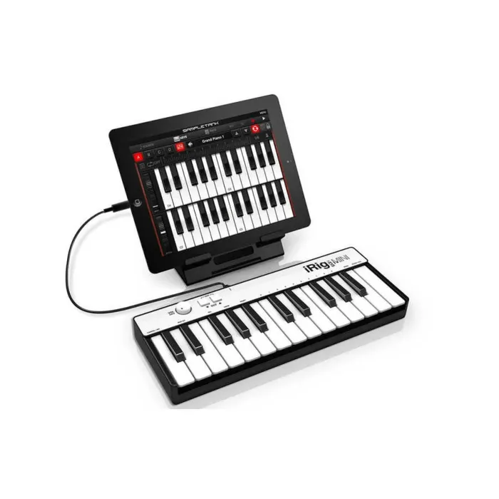 iRig Tuşlar Kısa Mesafede IK Multimedia iPhone, iPod Touch, iPad ve Mac ve Windows Bilgisayarlar ile Çalışır Tak Çalıştır Özelliği Bulunan Bir Taşınabilir USB MIDI Kontrol Ünitesidir. 25 Hıza Duyarlı Mini Tuş ve Arkadan Aydınlatmalı, Yumuşak Dokunmalı Octave Up/Octave Down Düğmelerine Sahiptir.