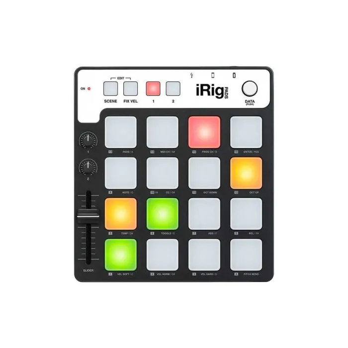 * Padler, Ne Kadar Sert Vurulduklarına veya Gelen MIDI Mesajlarına Cevap Olarak 3 Farklı Renkte Yanar