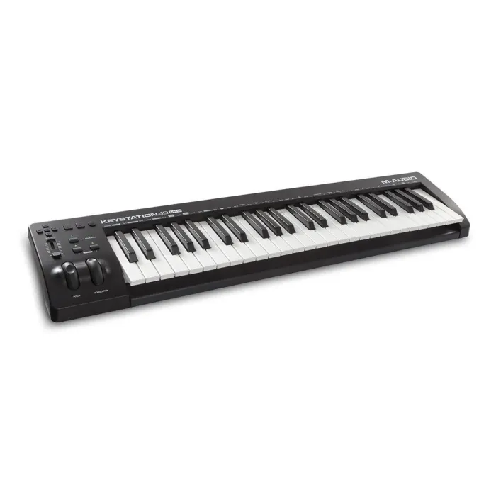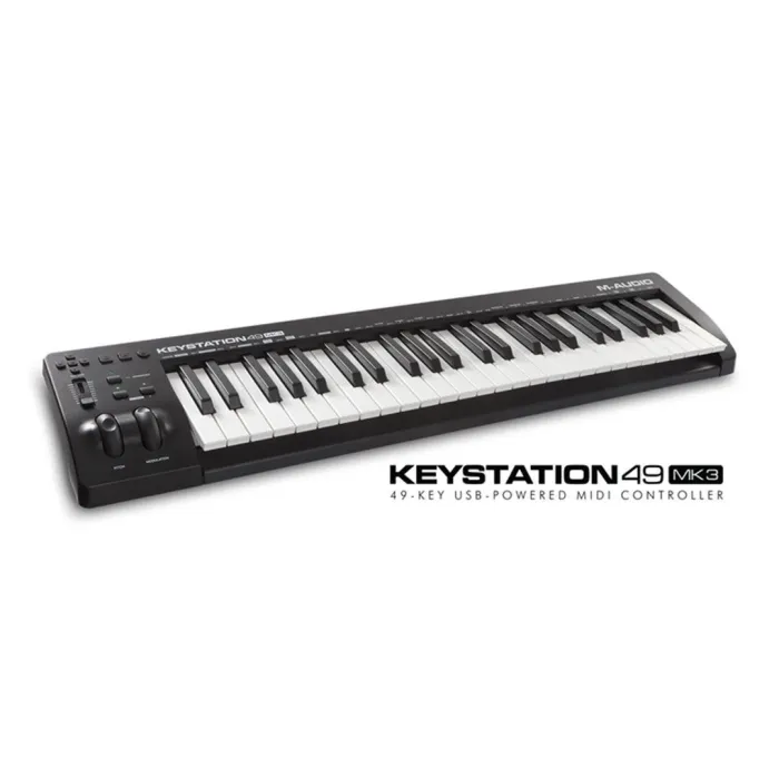 M-Audio Keystation 49 MK3, 49 tam boy, hız-duyarlı (velocity-sensitive) tuşuyla rahat ve doğal bir çalma hissi sunar. USB bağlantısı üzerinden çalışır ve Mac, PC ve iOS cihazlarla uyumlu bir şekilde kullanılabilir.