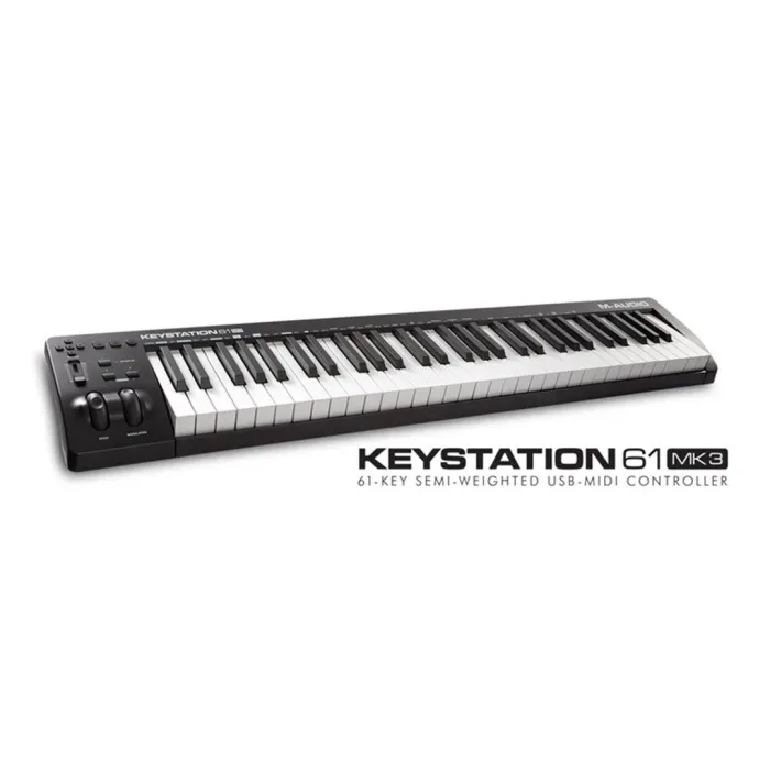 M-Audio Keystation 61 MK3, 61 tam boy hız duyarlı tuşa sahip kompakt bir USB MIDI klavyedir. Stüdyo ve sahne kullanımı için tasarlanan bu model, hafif yapısı ve taşınabilirliğiyle öne çıkar. Basit bağlantı seçenekleri ve geniş uyumluluğu sayesinde hem yeni başlayanlar hem de profesyonel prodüktörler için ideal bir çözümdür.