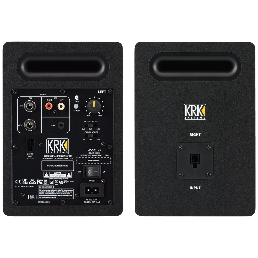 KRK Kreate 3, masaüstü stüdyo kurulumları ve içerik üretim alanları için geliştirilen aktif referans monitör çiftidir. 3.5 inç örgü cam elyaf kompozit woofer ve tekstil kubbe tweeter yapısı, miks detaylarını açık biçimde sunar. Kompakt gövdesi küçük odalarda kontrollü ve dengeli bir dinleme deneyimi sağlar.