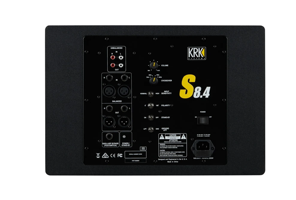 KRK S8.4, kompakt formunda sıkı ve tanımlı bas sunan 8" cam aramid kompozit woofer ile donatılmıştır. Güçlü ve verimli bir Class‑D amplifikatör, geçici tepki, kontrol ve etkiyi önemli ölçüde artırır. Dört kademeli seçilebilir crossover, mevcut monitörlerinle kolayca uyum sağlar.