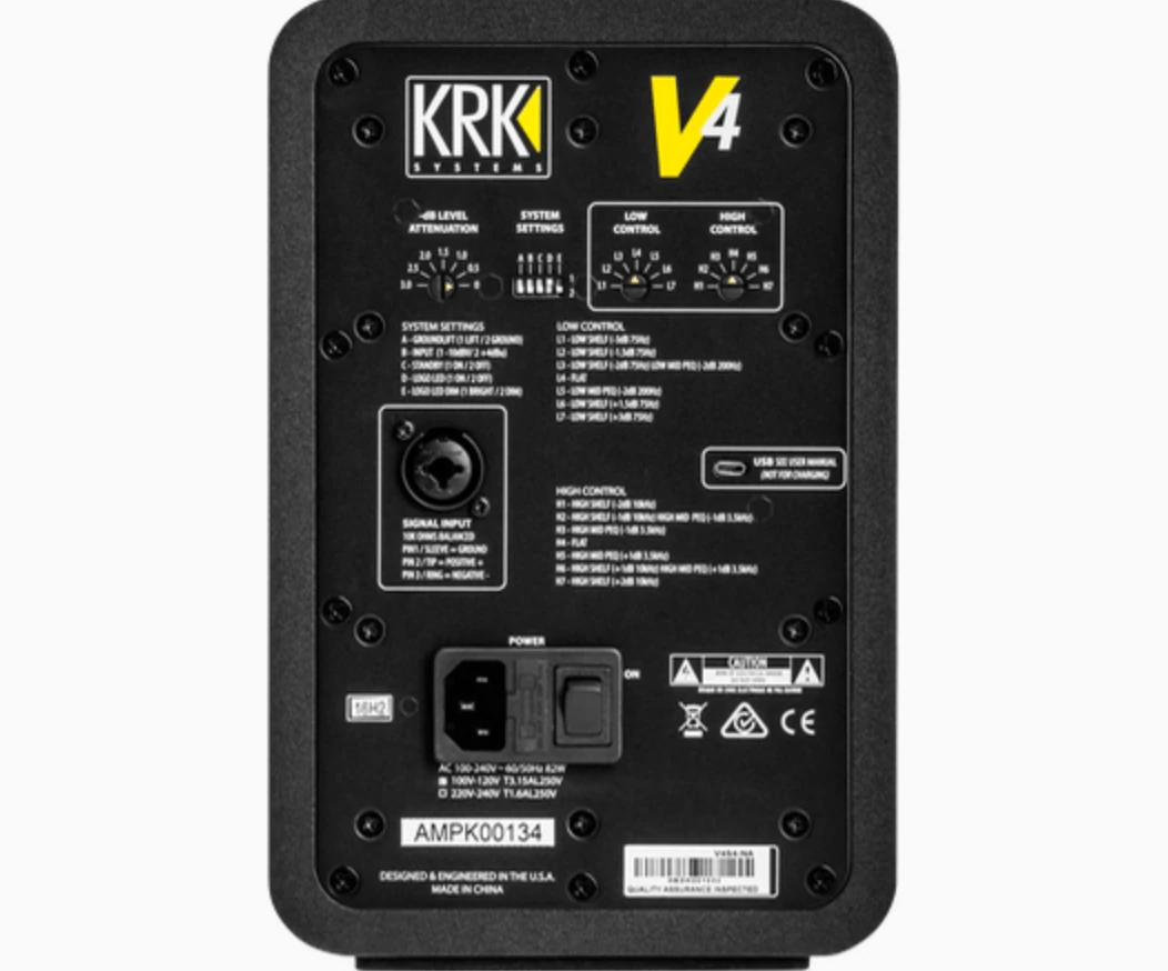 KRK V4S4, iki yönlü (2‑way) tam bant stüdyo referans monitörüdür. 1" Kevlar® tweeter ve 4" Kevlar® dokuma woofer sayesinde orta ve yüksek frekanslarda netlik; düşük frekansta sıkı kontrol sağlar. Bi‑amped Class‑D amplifikatör (55 W woofer, 30 W tweeter, toplam 85 W) ile sürücülere güçlü tepki ve netlik kazandırılır.