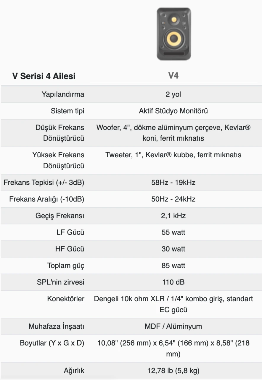 KRK V4S4 Aktif 4" Stüdyo Monitörü