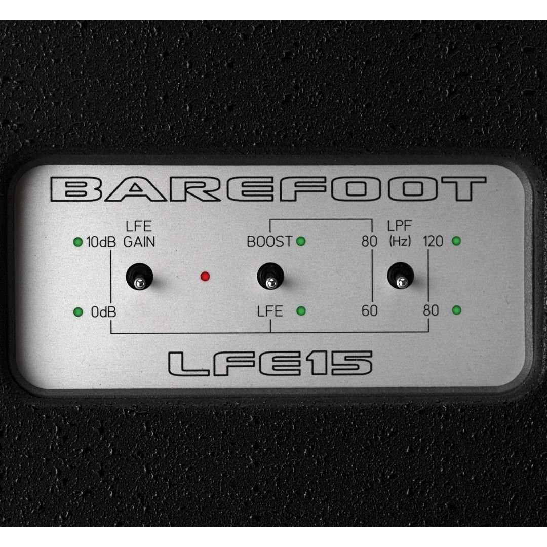 • MUTE: İstendiğinde LFE15'i sessize almak için uzak bir ayak pedalı dahildir.