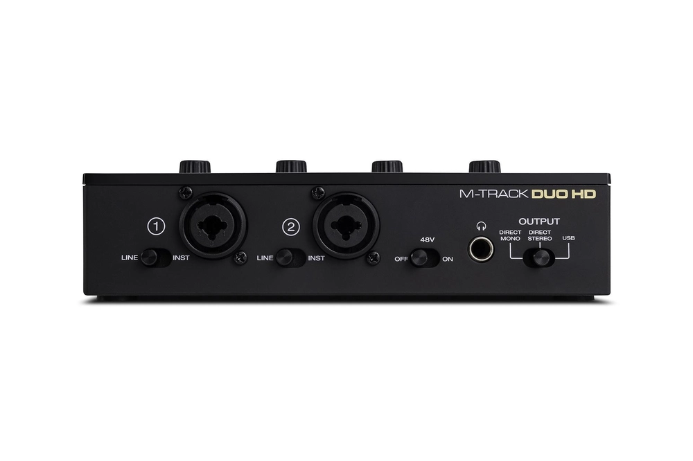 M‑Track Duo HD, 2 adet combo XLR/TRS girişi ile mikrofon, gitar ve klavye gibi birçok ses kaynağını destekler. Direct/USB switch özelliği sayesinde gecikmesiz monitörleme imkanı sunar. +48 V fantom güç desteği, kondansatör mikrofonlarla uyumlu kullanım sağlar. Paket içerisinde yer alan HDH41 stüdyo kulaklıkları, doğru frekans tepkisi ile mix ve kayıt işlemlerinde güvenilir referans sunar. Yüksek kaliteli M100 kondansatör mikrofon ise sesin tüm detaylarını yakalayarak stüdyo kalitesinde sonuçlar verir. Kullanıcı dostu tasarımı, taşınabilir yapısı ve birlikte gelen yazılım paketi ile M‑Track Duo HD, müziğe başlamak için ihtiyaç duyulan her şeyi bir araya getirir.