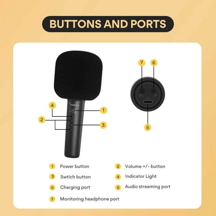 Maono MKP100, Bluetooth 5.0 bağlantısı, dahili hoparlör ve şık ergonomik tasarımıyla karaoke keyfini her yere taşıyan taşınabilir bir karaoke mikrofonudur. Kablosuz özgürlük, net ses kalitesi ve eğlenceli kullanım özellikleri sunar.
