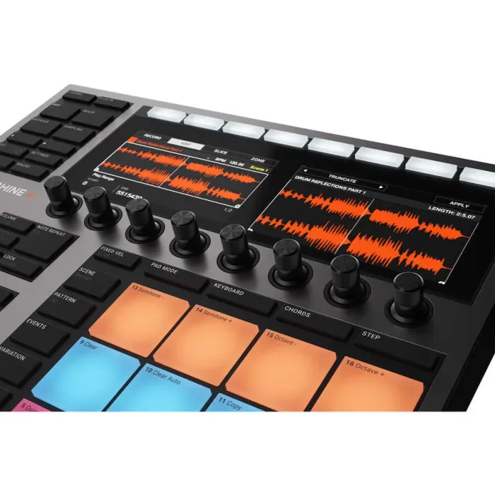 Vuruşlar ve melodiler oluşturmak, örneklemek, müzik düzenlemek ve sahnede veya stüdyoda performans sergilemek için sürükleyici bir ürün MASCHINE davul ve bas synth eklentileri ve efektleri içerir Gerektiğinde hızlı, sorunsuz oluşturma için dört çekirdekli CPU ve 4 GB RAM 2 x ¼” TRS hat çıkışı, 2 x ¼” TRS hat girişi, ¼” dinamik mikrofon girişi, stereo kulaklık çıkışı, 1 x MIDI Girişi, 1 x MIDI çıkışı ile profesyonel sınıf, 44,1 kHz / 24-bit ses arabirimi 16 adet hıza duyarlı ped Ürünleri kablosuz olarak kurmak ve güncellemek, başkalarıyla işbirliği yapmak ve diğer donanımlarla senkronize etmek için WiFi ve Ableton Link kullanılarbilir