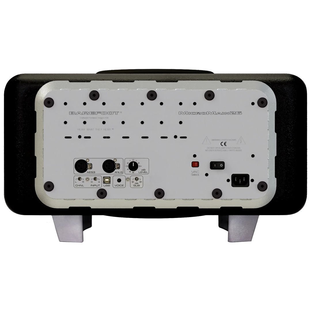MicroMain26, 30Hz'den 45kHz'e kadar uzanan kapalı muhafazalara yerleştirilmiş 6 sürücü ünitesine sahip 4 yollu aktif bir sistemdir ve son derece düşük distorsiyon, nefes kesici dinamik aralık ve ultra hızlı geçici tepki sunar. Halka radyatör tweeter inanılmaz derecede ayrıntılıdır ve en yüksek frekanslarına kadar çok geniş bir dağılım üretir. 2,5” alüminyum konili orta kademe, son teknoloji 3D baskılı dalga kılavuzu muhafazasına yerleştirilmiştir. 5.25” woofer'lar, gezegendeki herhangi bir sürücüye rakip olacak şekilde üst bas ve alt orta kademe detayı sağlayan bir ileri teknoloji falanksına sahiptir. Barefoot Sound, MicroMain26 için güçlü ve tamamen şeffaf bir amplifikatör katı geliştirdi. Sistem, Barefoot'un geliştirmek için binlerce saat harcadığı çığır açan bir DSP (Dijital Sinyal İşlemcisi) crossover ile bir araya getirilmiştir. Güzel tasarlanmış üst düzey dönüştürücüler ve son teknoloji tescilli filtreleme teknikleri ile MicroMain26 ses sahnesi kusursuz bir şekilde uyumlu ve derinlemesine ortaya çıkarıcıdır.