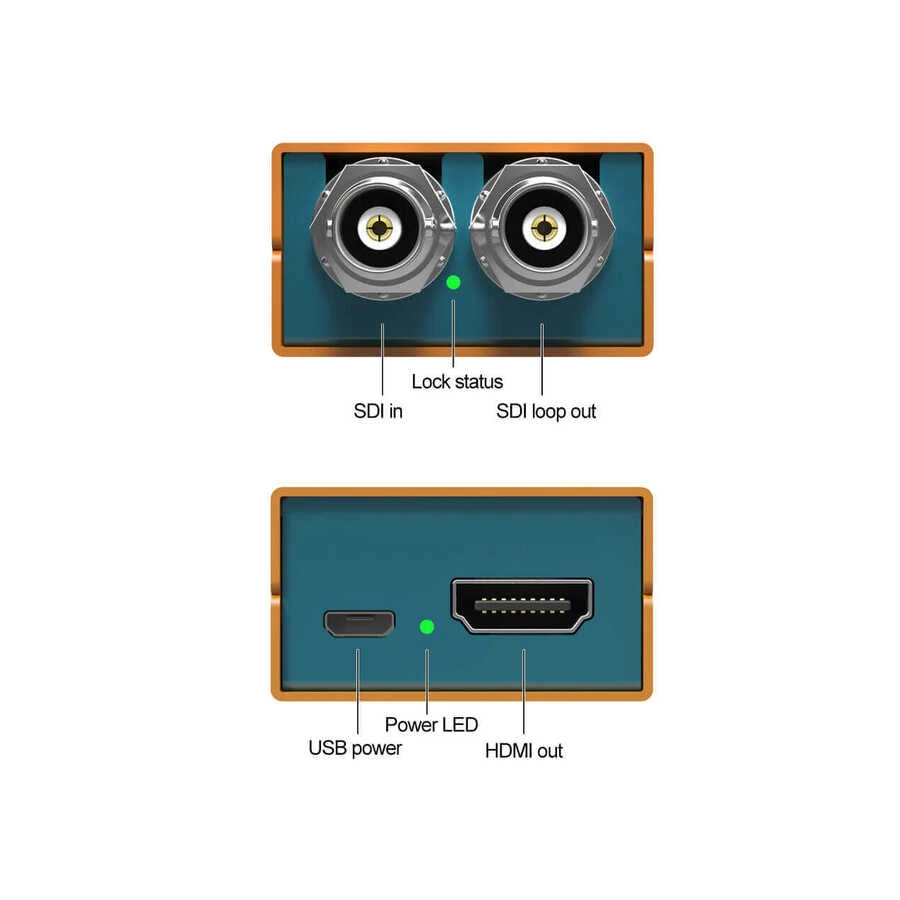Mini SC1112, SDI'dan HDMI'a çevirici ikili SDI-loop çıkışı ile micro USB üzerinden güç beslemesi sağlar ve USB adaptörü ile birlikte gelir.