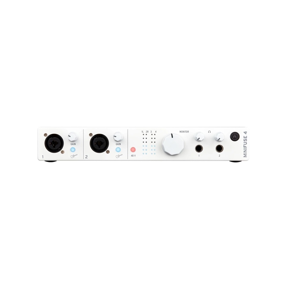 MiniFuse 4, ses üreticilerinin tüm beklentilerini karşılayacak şekilde tasarlanmıştır. Combo XLR/1/4” girişleri sayesinde mikrofon veya enstrüman kablolarını kolayca bağlayabilir, gain kontrolü ile sinyal seviyesini hassasiyetle ayarlayabilirsiniz. 48V fantom güç desteği, kondansatör mikrofonlar için gerekli enerjiyi sağlar. Gerçek zamanlı renkli VU metre ile ses seviyenizi anlık takip edebilir, monitör ve kulaklık çıkışlarındaki ses seviyelerini bağımsız olarak kontrol edebilirsiniz. İki adet kulaklık çıkışı, grup kayıt ve miksaj oturumlarında eş zamanlı dinleme imkanı sunar. Ayrıca, USB-A portu sayesinde MIDI kontrol cihazları gibi ek donanımları kolayca bağlayarak çalışma alanınızı genişletebilirsiniz. MiniFuse 4, her ortamda güvenilir ve esnek bir kayıt deneyimi sunar.