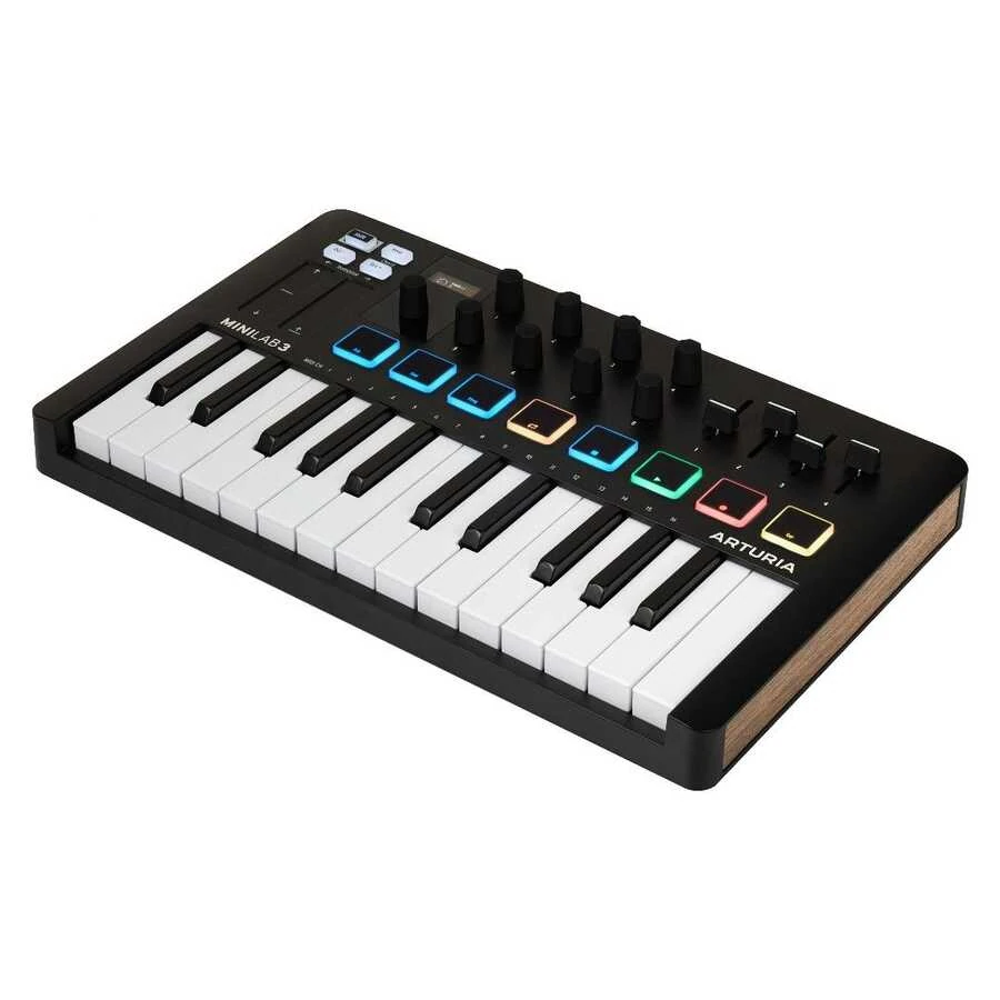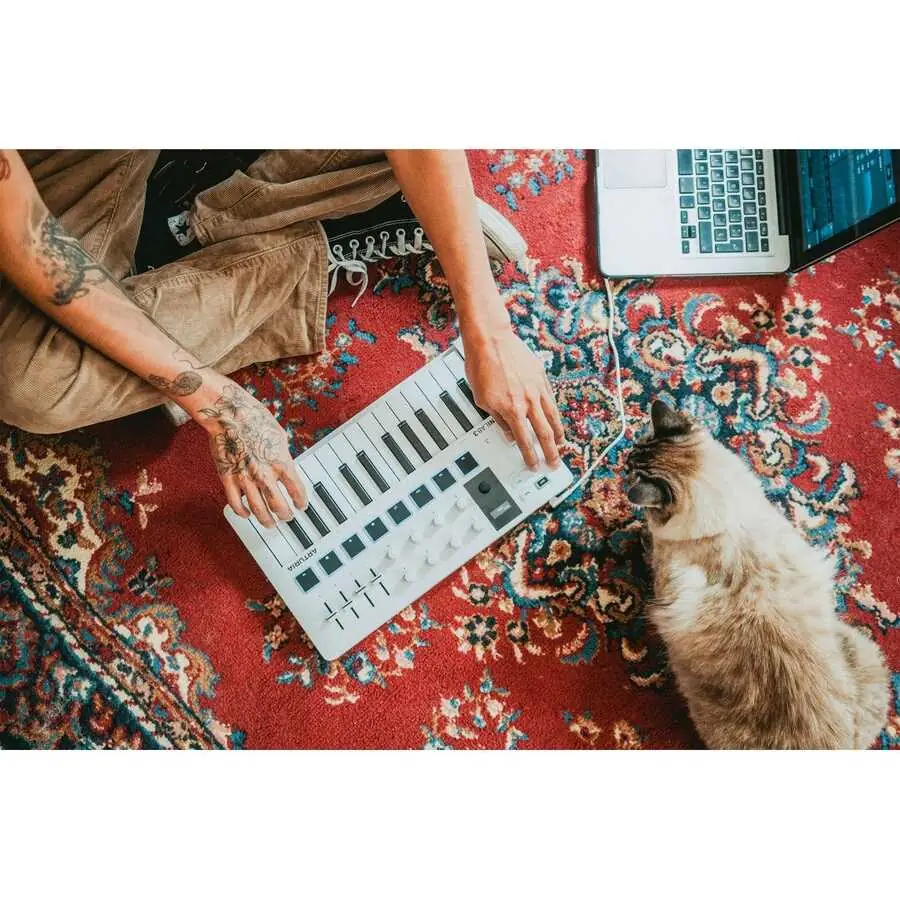 Arturia MiniLab 3, müzik üretiminde akışınızı yakalamanız için tasarlanmış evrensel bir MIDI kontrol cihazıdır. Plug-and-play özelliği sayesinde, karmaşık kurulumlara gerek kalmadan hemen müzik yapmaya başlayabilirsiniz. MiniLab 3, yüksek kaliteli velocity-sensitive tuşları ve sezgisel kontrol yüzeyiyle, hem yeni başlayanlar hem de profesyoneller için ideal bir çözüm sunar. DAW projelerinizi gerçek zamanlı olarak kolayca kontrol edebilir, zengin enstrüman seslerini birkaç tıklamayla keşfedebilir ve parçalarınızın, ritimlerinizin ve mikslerinizin profesyonel kalitede olmasını sağlayabilirsiniz. Bu kompakt MIDI klavye, müzik yapma sürecinizi sizin tarzınıza ve iş akışınıza göre şekillendirir; böylece yaratıcılığınızı sınırlamadan özgürce ifade etmenize olanak tanır.