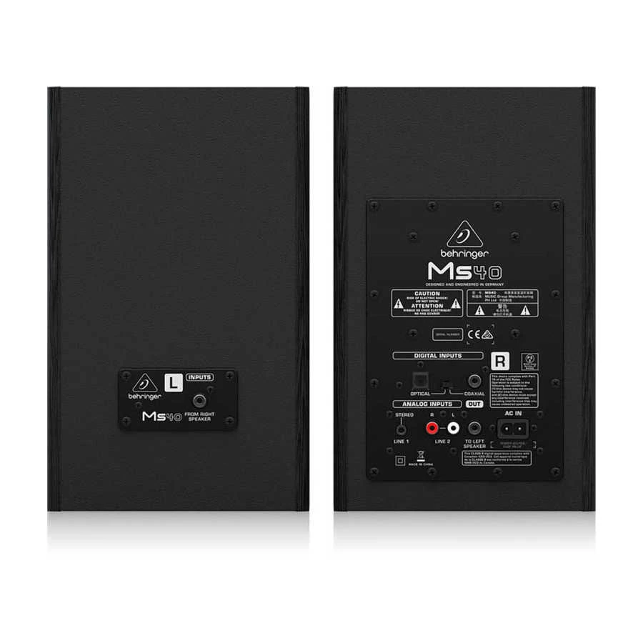 4.75" Woofer ve 2.5" Yüksek Çözünürlüklü Tweeter'lara Sahip Olan MS40 Monitör Hoparlörleri, Bilgisayar İş İstasyonuna Sahip Herhangi Birinin Erişimine Yüksek Kalitede Ses Getiriyor. En Son Şaheserlerinizi İzleyen Bir Müzisyen Olun ya da İşteki En Sevdiğiniz Şarkıları Dinleyen Bir Kişi Olun, MS40 Hoparlörler Sesleri Önemli Ölçüde Daha İyi Hale Getirecektir. Ayrıca Elektronik Klavyeler İçin Mükemmel Eklenti Hoparlörler Yaparlar. Öne Monteli Ses Seviyesi, Ayrı Bas ve Tiz Kontrolleri, Doğru Ses Ayarlarını Çok Kolaylaştırır. MS40, Çoklu Giriş Seçenekleriyle Sesi Daha da Yüksek Seviyelere Çıkarır. Dahili Mikser, CD / MD / MP3 Çalarları Bağlamak İçin 1⁄8" Stereo Giriş, Teyp ve Stereo Klavye Modülleri İçin Çift RCA Jakları ve Hatta Dijital Sinyal Kaynakları İçin Hem RCA Hem de TOSLINK Konektörlerini İçerir.