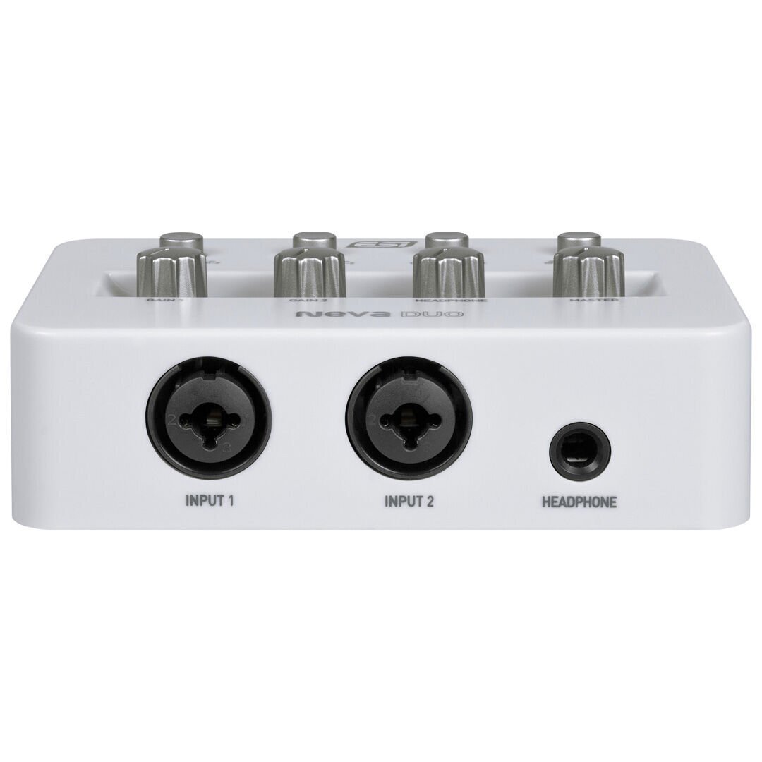 Süper uygun fiyata gelen Neva Duo, kompakt formunu korurken üstün ses kalitesi, zarif tasarım ve kapsamlı bir yazılım paketi sunar. Profesyonel önceden amfili mikrofon ve gitar girişlerinin yanı sıra iki hat girişi ile donatılmış olarak, hemen başlamak için ihtiyacınız olan her şeyi sunar. USB-C bağlantı noktası, bilgisayarınıza veya mobil cihazınıza bağlanmayı kolaylaştırır. Neva Duo, yaratıcılığınıza odaklanabilmeniz için DirectWIRE loopback işlevi ve daha fazlasını içeren profesyonel ASIO sürücüleri ile birlikte gelir.