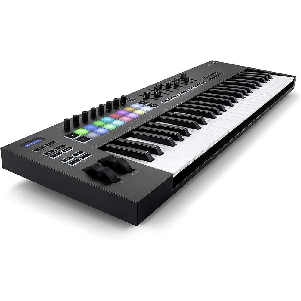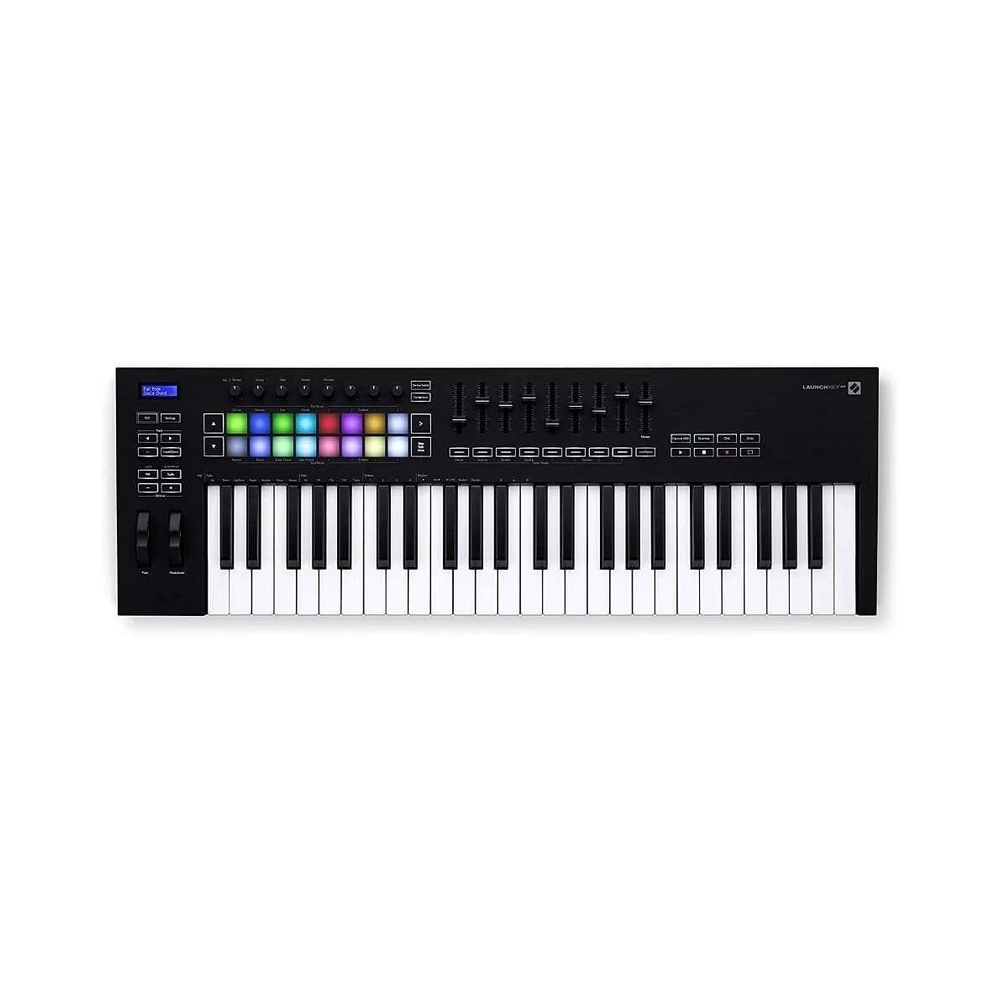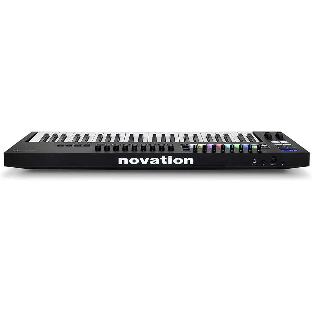 Novation Launchkey 49 MK3, 16 RGB aydınlatmalı, velocity-sensitive pad ve dokuz adet 45mm fader ile canlı performanslarda ve stüdyo çalışmalarında maksimum kontrol sağlar. Sekiz rotary encoder sayesinde enstrüman ve efektlerinizi anında şekillendirebilir, beş pinli MIDI çıkışı ile donanım cihazlarınızı kolayca kontrol edebilirsiniz. Standalone çalışma özelliği sayesinde bilgisayar olmadan da tüm fonksiyonları kullanabilir, donanım tabanlı stüdyolarda veya sahnede esnek çözümler elde edersiniz.