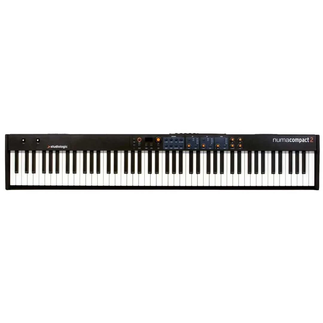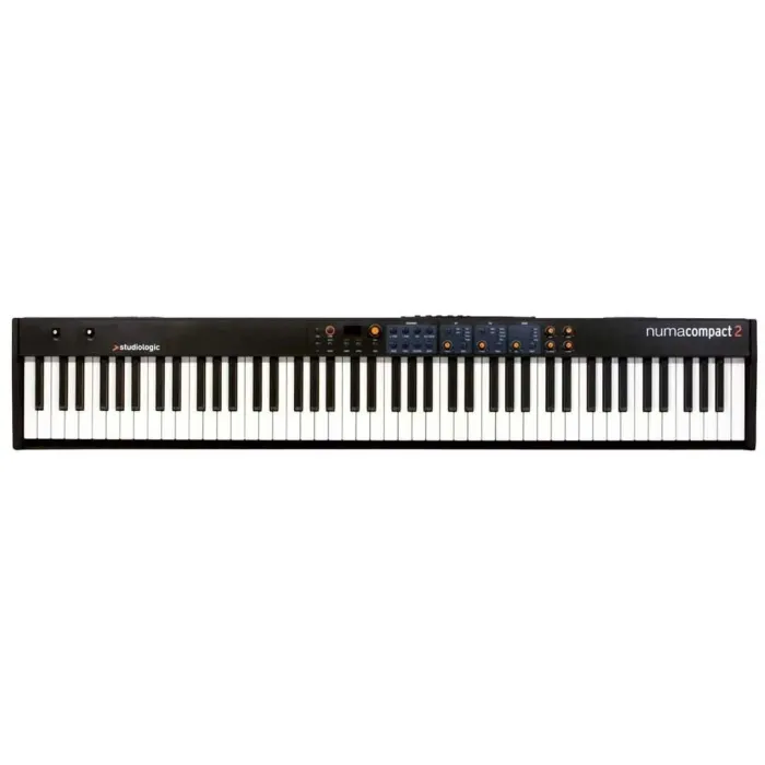 Studiologic by Fatar Numa Compact 2, müzisyenlerin ve prodüktörlerin ihtiyaçlarına modern bir yanıt sunan, taşınabilirliği ve profesyonel ses kalitesini bir arada sunan yenilikçi bir MIDI klavye/piyano çözümüdür. Tam 88 tuşlu TP/9 yarı-ağırlıklı aksiyon klavyesiyle gerçekçi piyano hissini kompakt bir gövdede sunarken, yalnızca 7,1 kg ağırlığı sayesinde evde, stüdyoda veya sahnede kolayca taşınabilir. Dahili dijital amplifikatörü ve güçlü hoparlörleriyle, harici ekipmana ihtiyaç duymadan yüksek kaliteli ses deneyimi yaşatır. Numa Compact 2, evde pratik yapmaktan canlı performanslara kadar geniş bir kullanım yelpazesi sunar; ister kulaklıkla sessiz çalışın, ister PA sistemine bağlanarak sahnede güçlü bir performans sergileyin. Kompakt boyutuna rağmen sunduğu ses kalitesi ve çok yönlülük, onu hem amatör hem de profesyonel müzisyenler için vazgeçilmez bir enstrüman haline getiriyor.