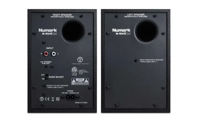 Sesleri kompakt bir formatta sunmak için tasarlanan Numark N-Wave 360, iki adet hoparlör şeklinde gelmektedir. 3" woofer ile mavi LED aydınlatmalı 1" tweeter yapıya sahiptir. 60W'a kadar tepe gücü sağlayabilir.