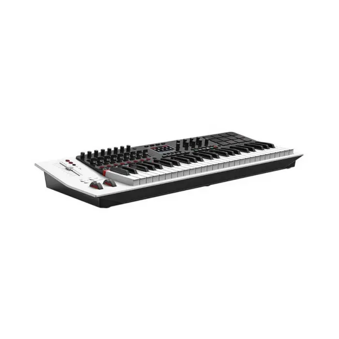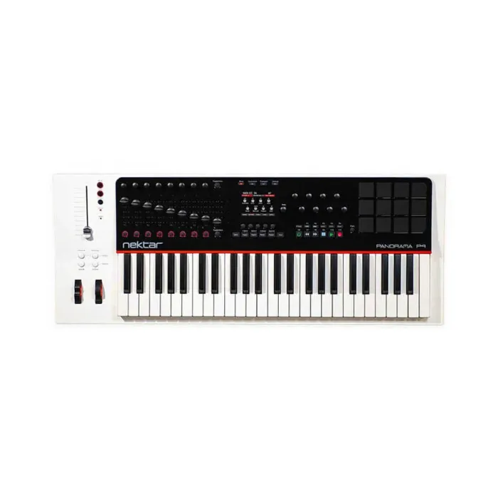 Panorama P4’ün 49 tuşlu yarı ağırlıklı klavyesi, akustik piyano hissiyatını modern bir MIDI kontrol cihazında sunar. Özel ağırlık sistemi, tuş basışlarını yormadan temiz ve dengeli bir hareket sağlar. Geniş dinamik aralık ve beş farklı velocity eğrisi, her çalım stiline uygun hassasiyet sunar. Monofonik aftertouch, pitch bend ve modülasyon tekerleri ile performansınıza zenginlik katarken, ayak pedalı girişleri canlı çalımda ekstra kontrol imkânı tanır.