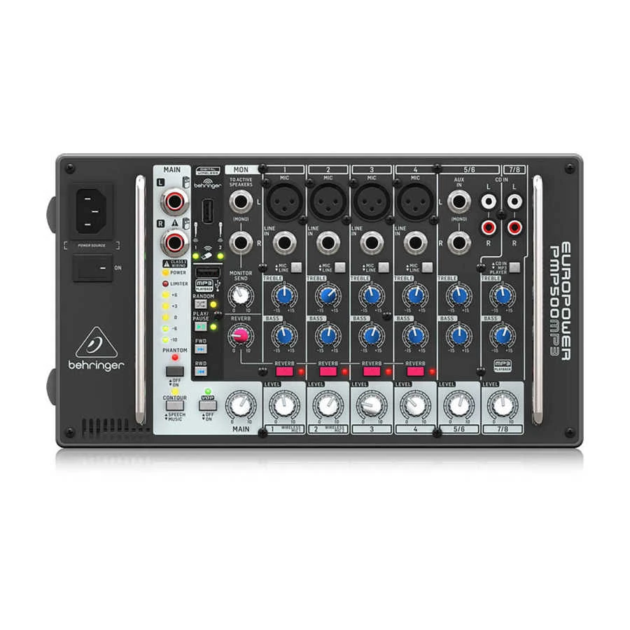 MP3 Çalar, Reverb ve Kablosuz Seçeneği ile Ultra Kompakt 500 Watt 8 Kanallı Mikser