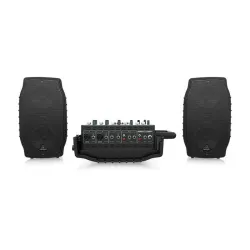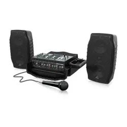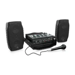 Ultra-kopakt 2 x 100-Watt, 5-kanal taşınabilir PA sistem taşıma çantası halindedir.Partiler, okul, sunumlar, seminerler, ayrobik, iş yeri etkinlikleri, tur rehberleri ve hatta bahçe düğünleri için muhteşem bir seçenek oluşturur. Sistemi saniyeler için de kurup kullanabilirsiniz. Oldukça kolay bir kuruluma sahiptir. Beklenmeyecek kadar güçlüdür. “Wireless Hazır” ile BEHRINGER dijital wireless mikrofonlar (ULM SERİSİ) ile kullanıma uygundur. (Ürün içeriğinde bulunmaz!)Ultra-Yüksek kalitede KLARK TEKNIK FX prosesör ile 100 efekt mevcuttur. reverb, chorus, flanger, delay, pitch shifter ve çeşitli multi-efektler.Devrimci FBQ Feedback Önleyici sistemi sayesinde kontrol alanı sunar ve kötü sürprizlere karşı koruma sağlar. 2 “Görünmez” Mikrofon preamp ı sayesinde (aynı zamanda phantom güç mevcuttur) istemeniz halinde condenser mikrofon ile de kullanılabilir.1 mikrofon/enstrüman kanlı ve 1 stereo kanal bağımsız Aux girişi.Stereo 7-bant Grafik EQ (ekolayzır) Ana çıkıilardan kontrol sağlar. Kompakt Hoparlörleri 4" bass ve 1" tiz'e sahiptir. Mikrofon ve kaplolarınızı içerisinde tutabilmeniz için özel bir kutu dizaynı vardır.