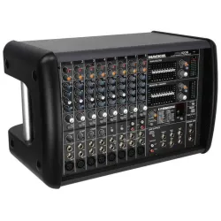 PPM1008, 8 adet Onyx mikrofon preamfisi, 3 bantlı EQ, 2 monitör çıkışı ve entegre dijital efektlerle çok yönlü bir kullanım sağlar. Çift 9 bantlı grafik EQ, hem ana miks hem de monitör çıkışlarını detaylı kontrol etme imkanı verir. Hafif tasarımı, yüksek çıkış gücü ve esnek bağlantı seçenekleri ile profesyonel sahne kullanımında güvenilir bir çözümdür.