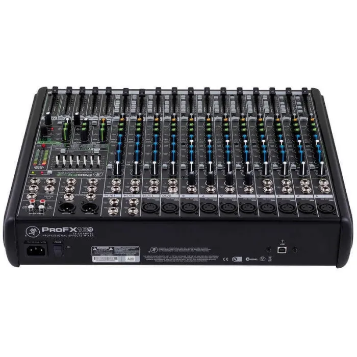 ProFX16v2, 10 adet Onyx mikrofon preamfisi ile düşük gürültü ve yüksek headroom sağlar. 3 bantlı EQ, aux send ve 16 dahili dijital efekt (reverb, delay, chorus vb.) ile geniş ses şekillendirme olanakları sunar. USB ses arabirimi sayesinde bilgisayar üzerinden kayıt ve playback yapılabilir. Ana çıkışlar, grup çıkışları, kulaklık ve kontrol odası çıkışlarıyla sahne ve stüdyoda esnek kullanım imkanı verir.