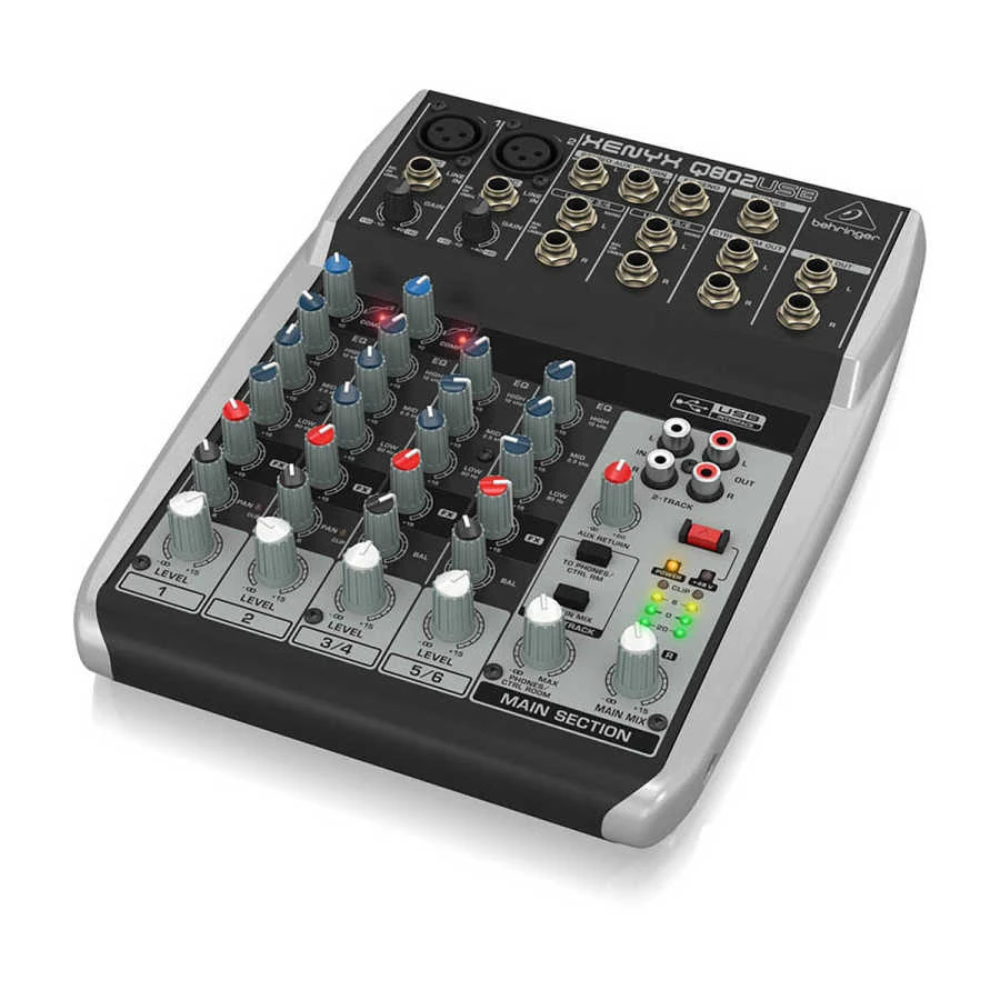 Behringer'den kompakt, değerli bir paket bulunuyor. Xenyx Q802USB, Xenyx mikrofon preamp'ları ve kompresörleri, Behringer'in "İngiliz" 3-band EQ'si ve bir USB ses arabirimi bulunan 8 girişli (2 mikrofon / hat, 2 Stereo hat, stereo aux dönüşlü) 2 yollu analog mikserdir. 2 parçalı ve USB girişleri ana karışıma veya telefon çıkışlarına atanabilir. Çıkış tarafında, Behringer Xenyx Q802USB size şebeke, ayrıca kontrol odası, kulaklıklar ve 2 çıkışlı çıkışlar verirken, USB bağlantı noktası kayıt için bilgisayarınıza takmanızı sağlar.